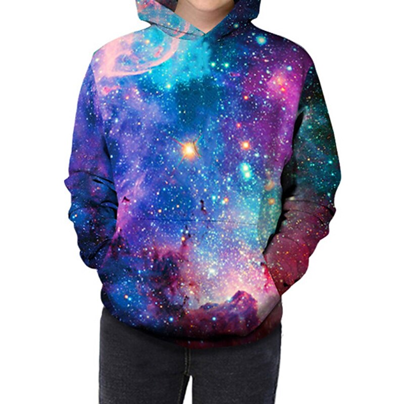 More information about Girls' 3D Galaxy Geometric Color Block Hoodie Long Sleeve 3D Print Spring Fall Winter Active Basic Kids Toddler 2-12 Years Outdoor Daily
