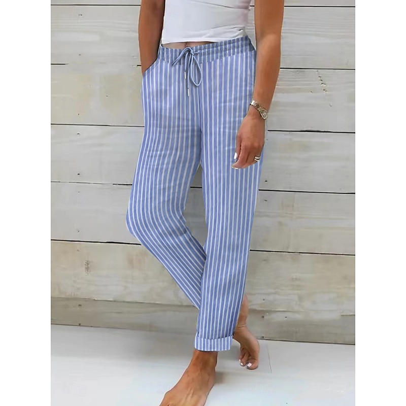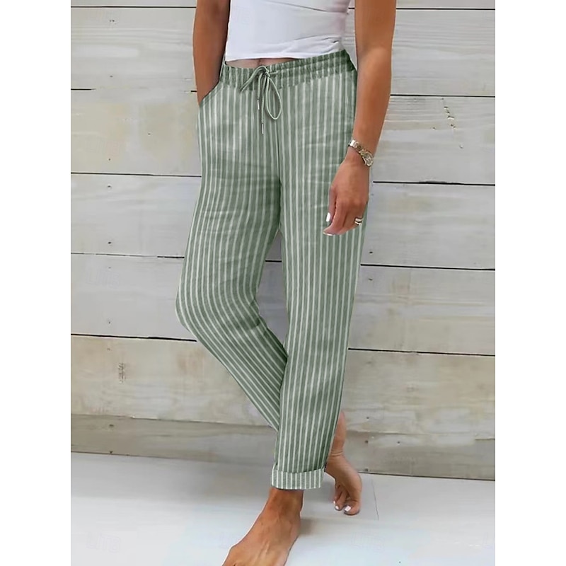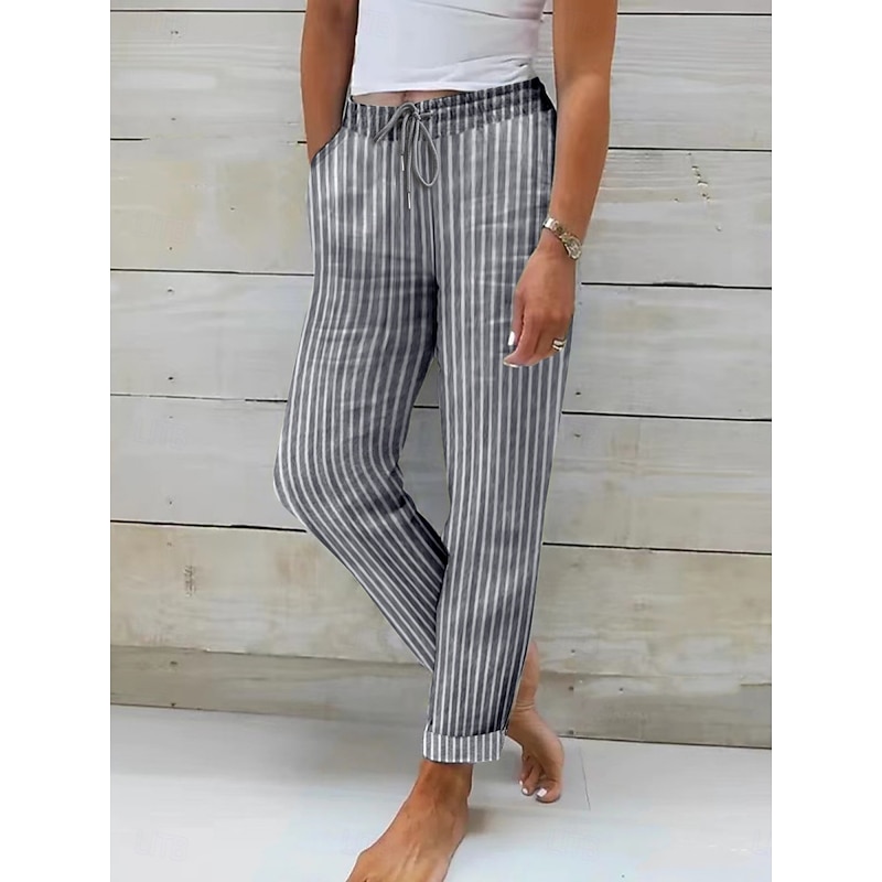 HOT ! Women's Cotton Linen Pants Pants Trousers Streetwear Casual Long High Waist Stripe Pocket Printing Elastic Drawstring Design Breathability Soft Micro-elastic Vacation Street Daily Wear Black Pink