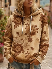 More information about Women's Pullover Hoodies Floral Vintage Casual Long Sleeve Hooded Regular Tops Dailywear Casual Drawstring Print Khaki Spring Fall