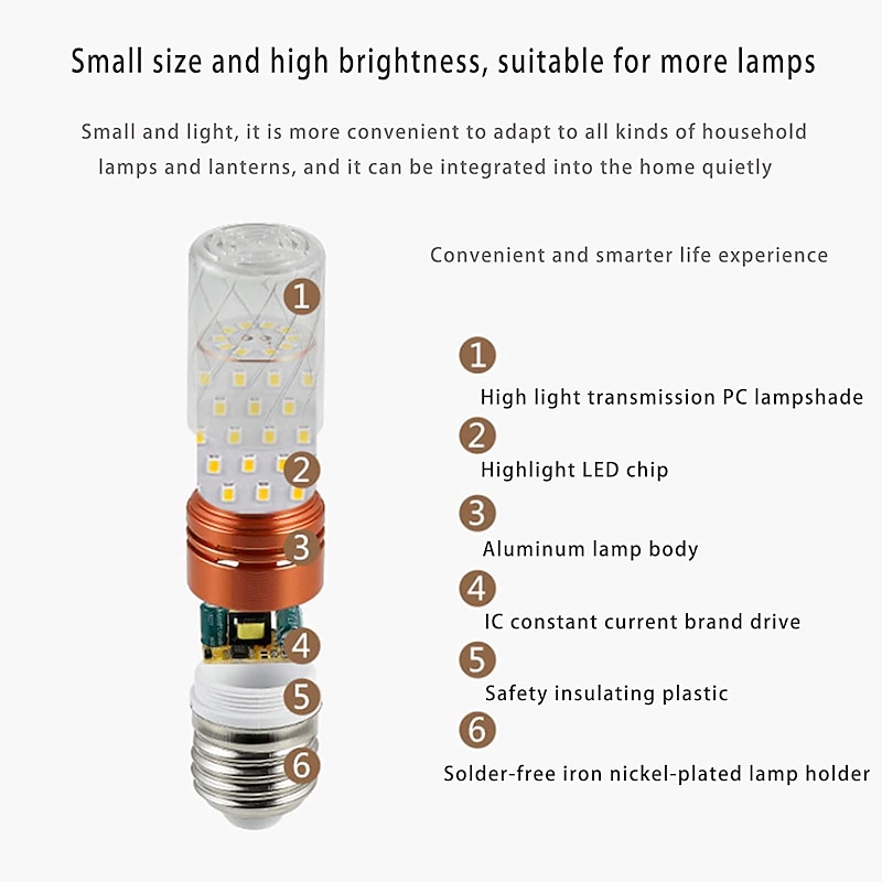More information about 6W E14/E27 Electrodeless Remote Control Dimming LED Corn Bulb 400lm Super Bright Three-color Dimming LED Bulb Equivalent to 100W Halogen Bulbs, Suitable for Multiple Indoor Lighting Places 4/6pcs