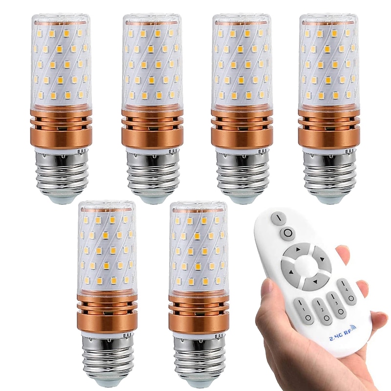 6W E14/E27 Electrodeless Remote Control Dimming LED Corn Bulb 400lm Super Bright Three-color Dimming LED Bulb Equivalent to 100W Halogen Bulbs, Suitable for Multiple Indoor Lighting Places 4/6pcs 15