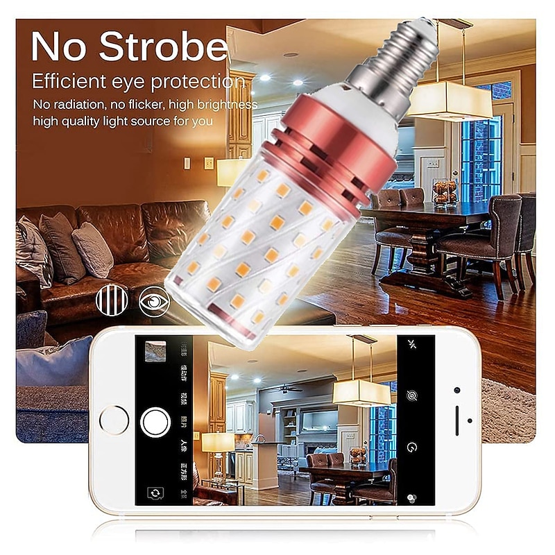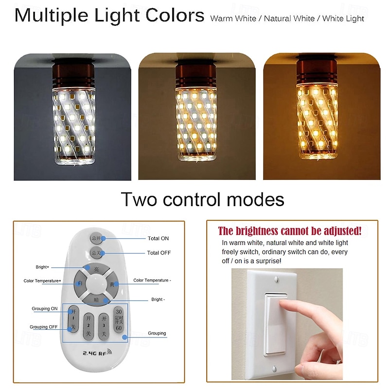 6W E14/E27 Electrodeless Remote Control Dimming LED Corn Bulb 400lm Super Bright Three-color Dimming LED Bulb Equivalent to 100W Halogen Bulbs, Suitable for Multiple Indoor Lighting Places 4/6pcs 11