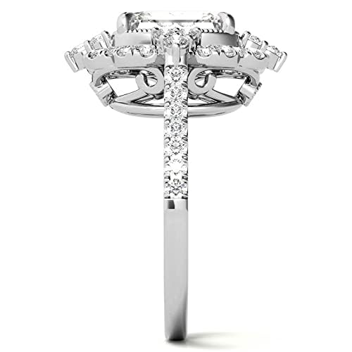 2-4 CT Emerald Cut Unique Halo Moissanite Ring Diamond Engagement Ring for Women Wedding Bridal Set Vintage Antique Anniversary Promise Gift for Her 6