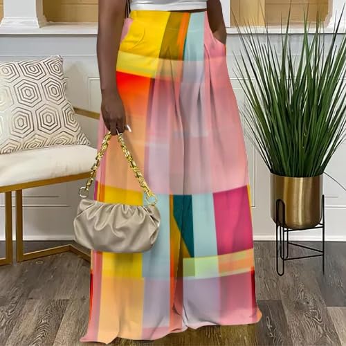 HOT ! Womens Geometric Print Wide Leg Pants High Waisted Palazzo Pants Casual Flowy Trousers with Pockets