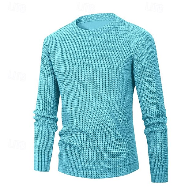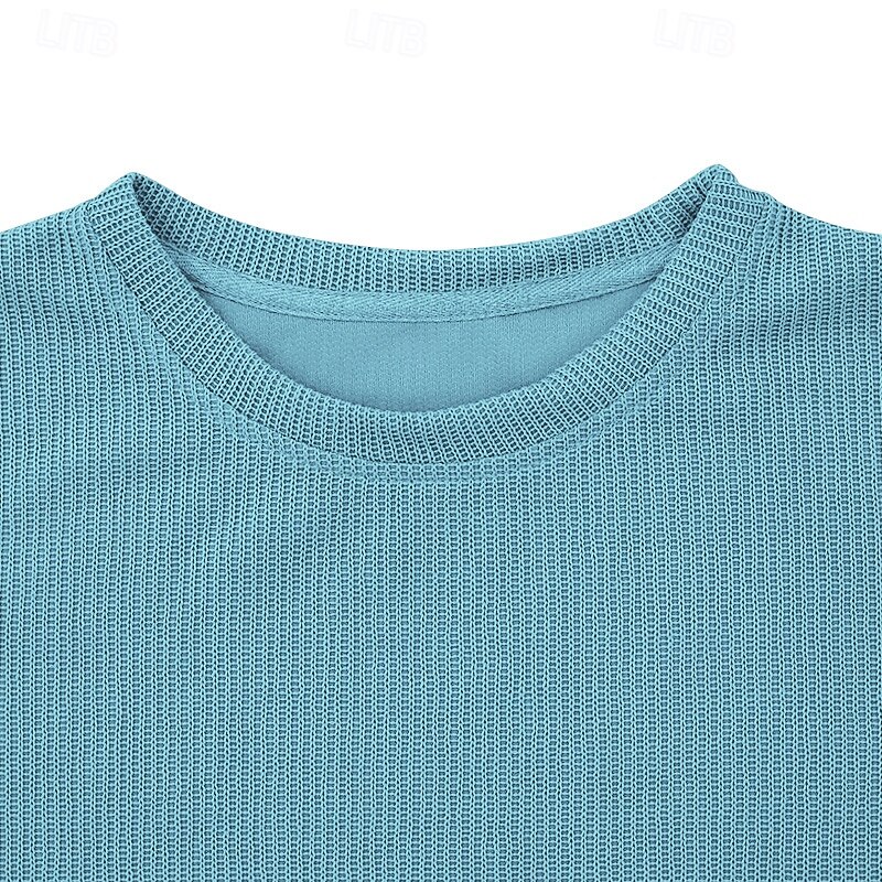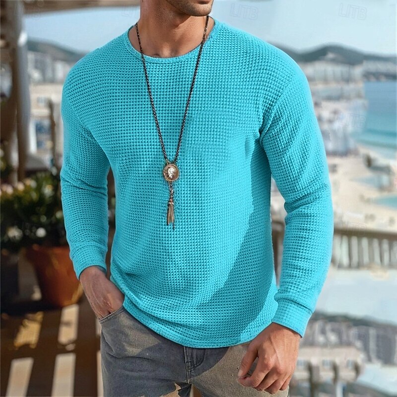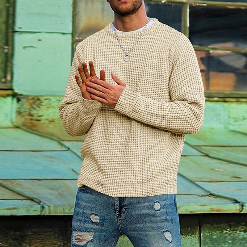 More information about Men's Sweater Waffle Knit Tee Tee Top Long Sleeve Shirt Long Sleeve Crew Neck Spring & Fall Cross-Seasons Solid Color Vacation Daily Casual Classic Style Outdoor Street Causal Light Blue Apricot Gray