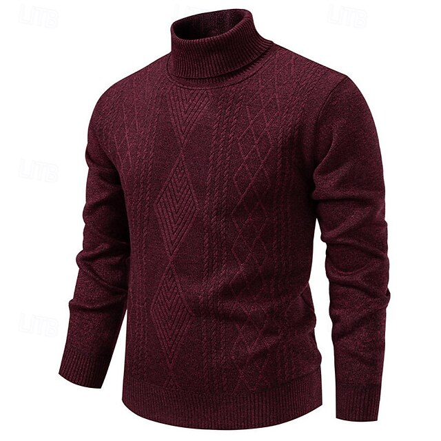 More information about Men's Pullover Sweater Jumper Knit Sweater Ribbed Knit Regular Tops Knitted Plain Turtleneck Fashion Basic Vacation Daily Wear Clothing Apparel Fall Winter Wine Black S M L