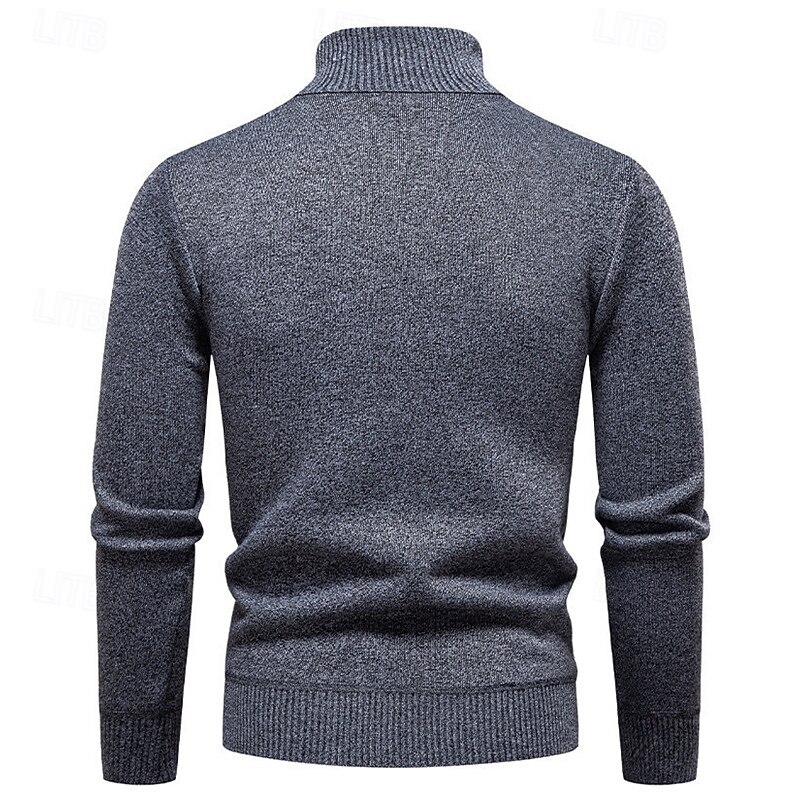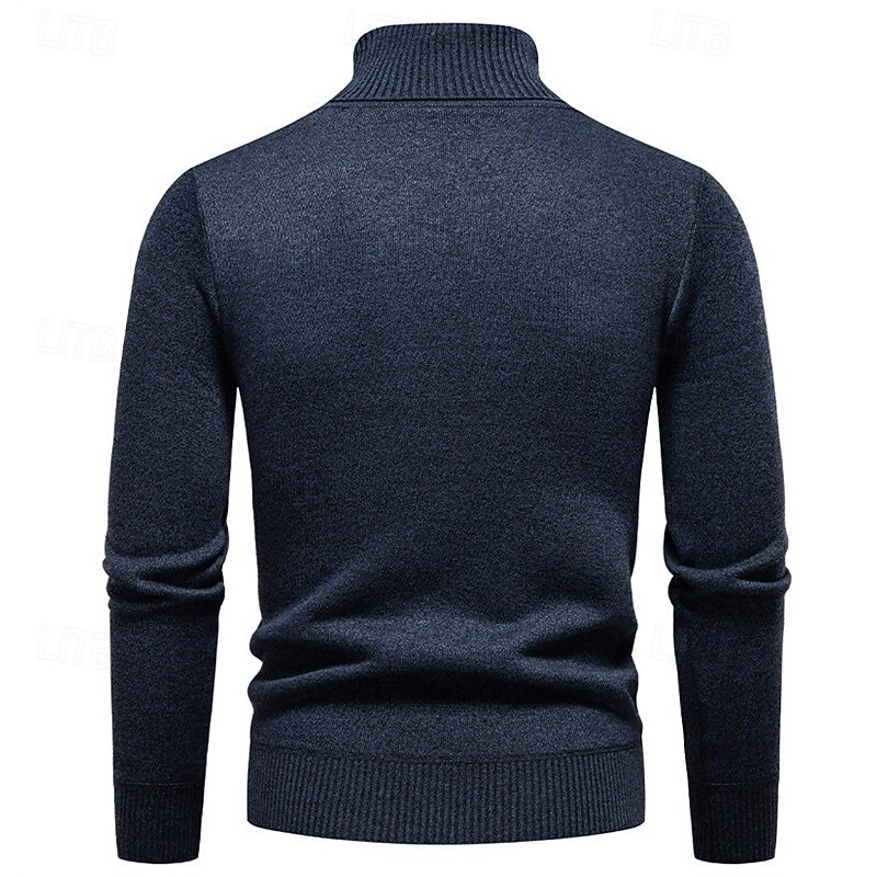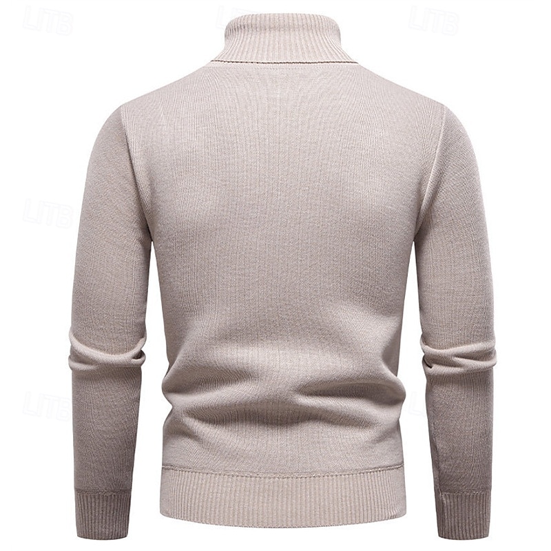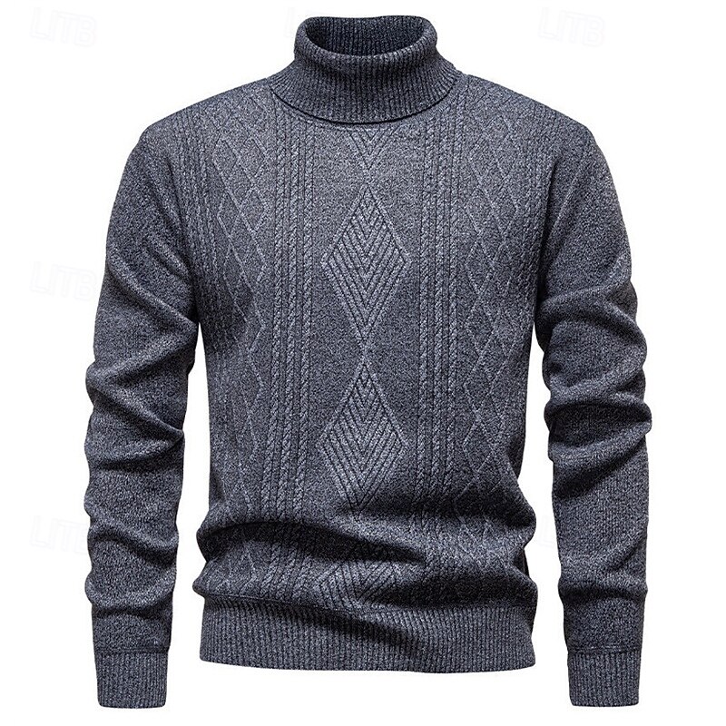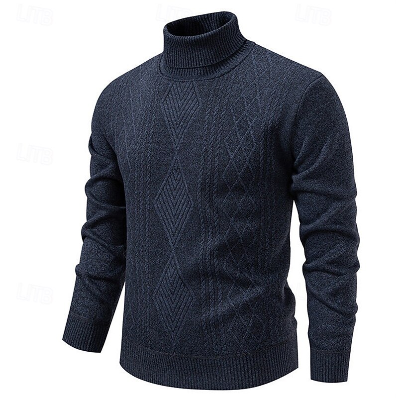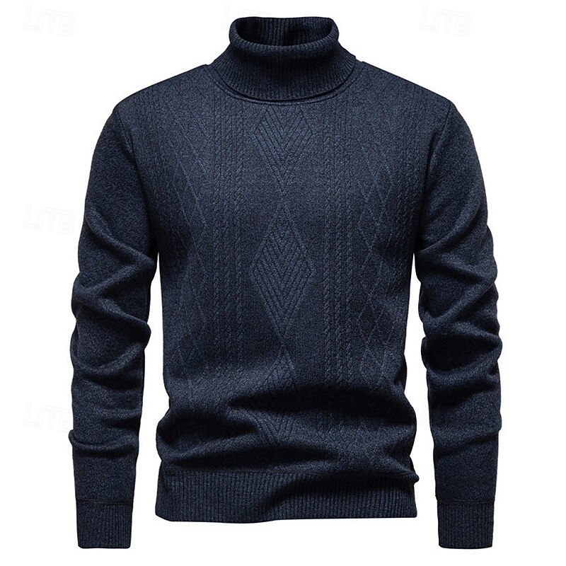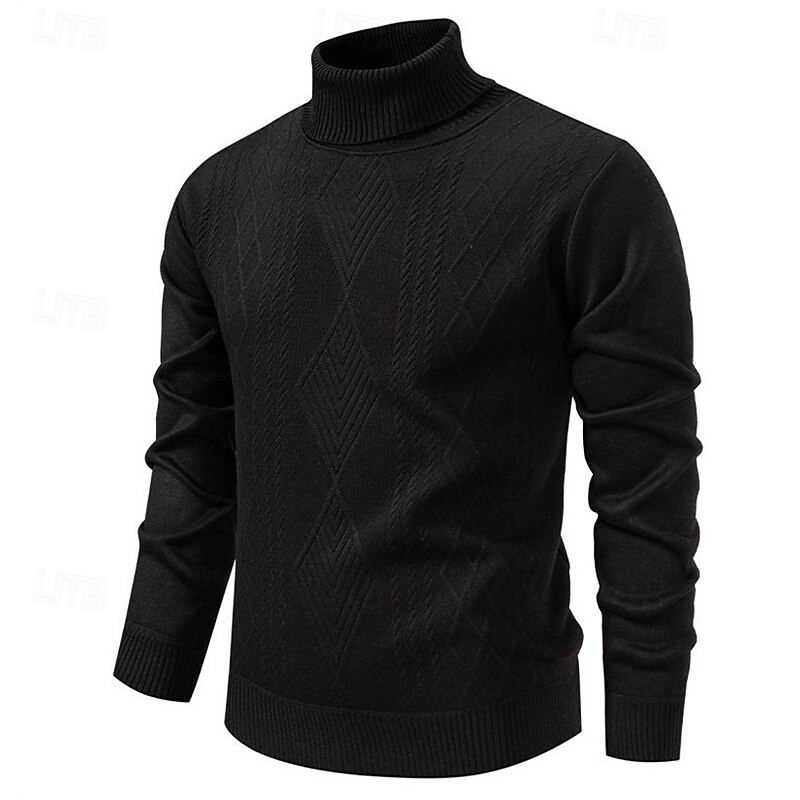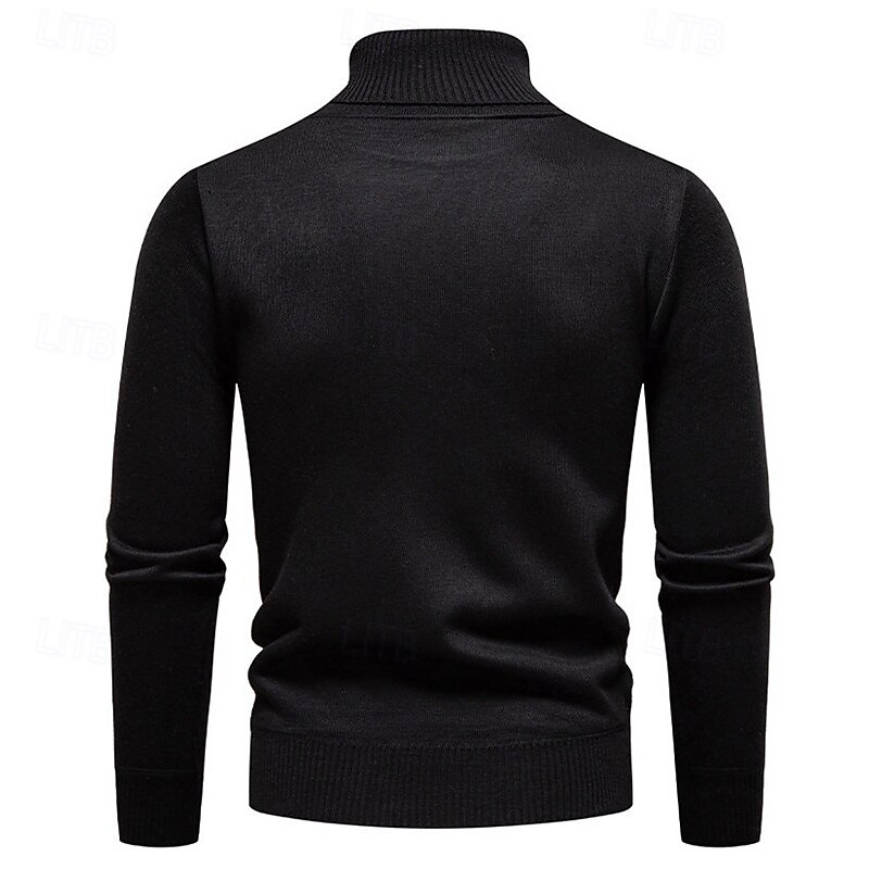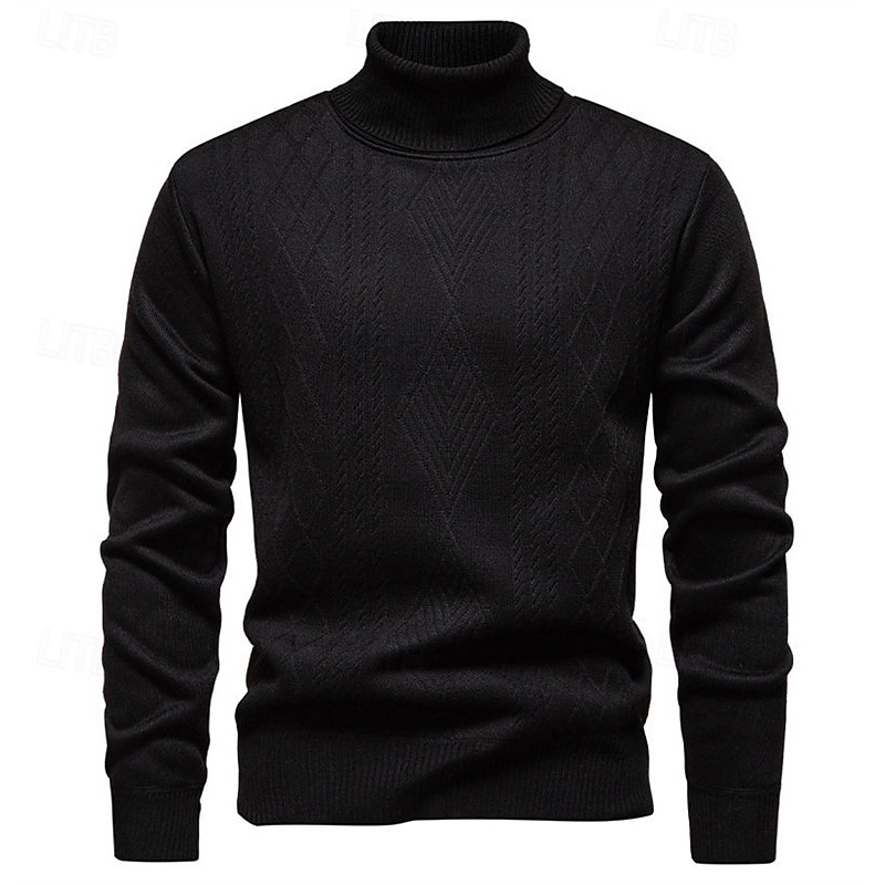 Highlights - Stay stylish and cozy in the Fall and Winter seasons with this polyester turtleneck sweater. - Perfect for men, this basic yet casual knit style features a ribbed texture for added interest. - The long sleeves make it perfect for any occasion, from dates to vacations.