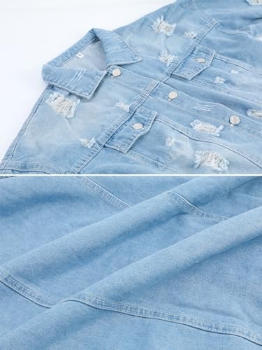 More information about Womens Distressed Ripped Denim Trench Coat Casual Slim Button Down Washed Long Jean Jacket
