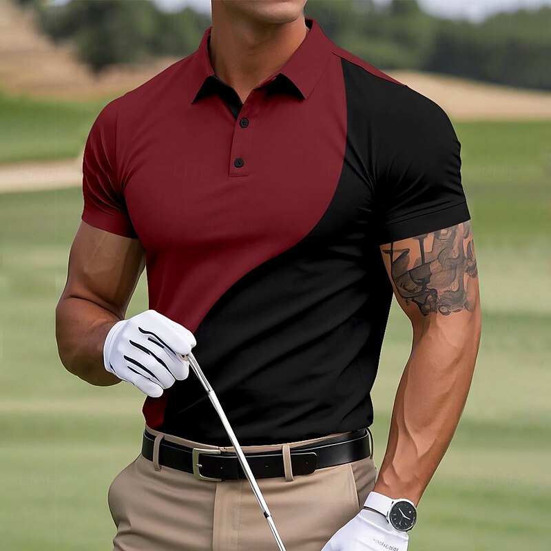 Men's Color Block Golf Polo Sports Polo Shirts Short Sleeve Polo Shirts Collared Shirts Casual Outdoor Athleisure Buttons Summer Yellow Red Navy Blue 6
