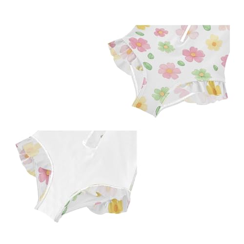 Pastel Flowers White Girls One Piece Swimsuit Rash Guard Long Sleeve Beach Swimwear 3T 2
