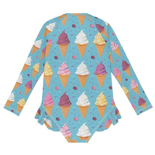 Ice Cream Cookies Girls Long Sleeve Swimsuits One Piece Zipper Bathing Suit UPF 50+ Rashguard Swimwear 6