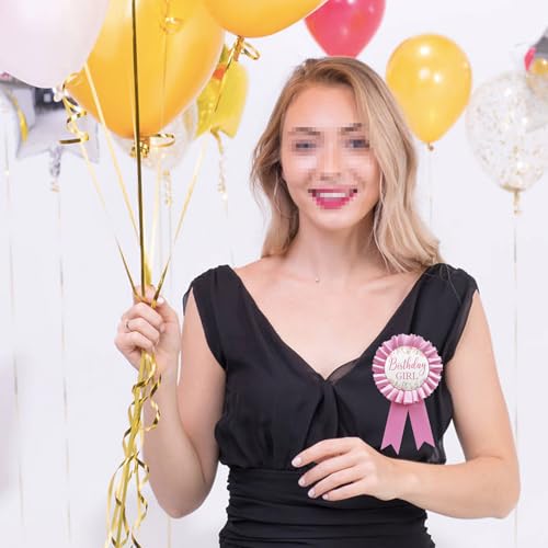 Birthday Girl Tinplate Badge Pin, Happy Birthday Pink Leaves Pattern Pink Corsage Button for Women Girl Birthday Award Ribbon Party Decorations 4