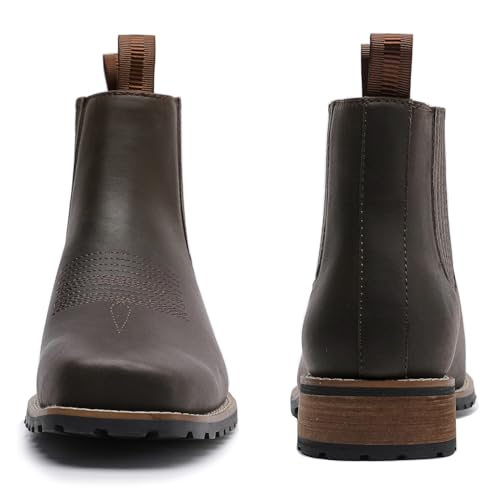 Men's Western Chelsea Cowboy Boots Square Toe, All-Weather Slip-On Work & Casual Boots for Men-botines para hombre 6