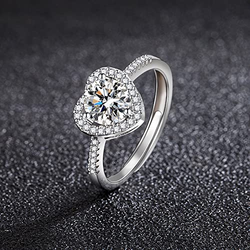 MALOYANVE Luxurious Heart Ring for Women Elegant Handmad Cut Heart Shaped Cubic Zirconia Adjustable Ring Wedding Engagement Bridal Valentine's Day Jewelry 1