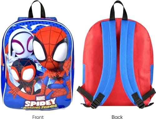 Spiderman Backpack for Boys 4-8yrs w/Padded Straps & Large Compartment - Kindergarten Backpack for Boys, Includes Spidey Water Bottle, 3D Puffy Stickers & More - Toddler Spiderman Backpack, Medium 5
