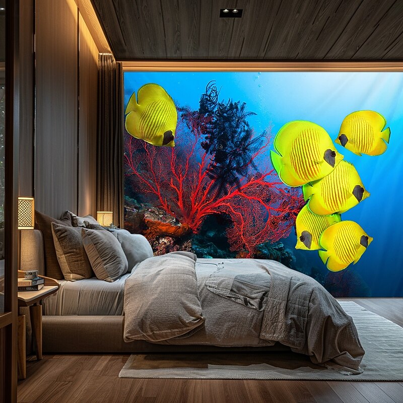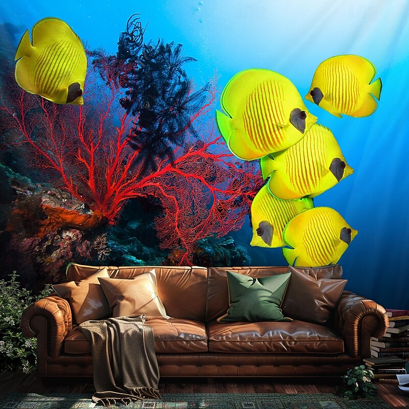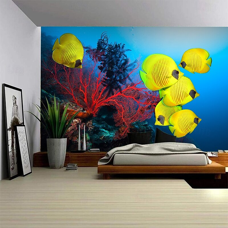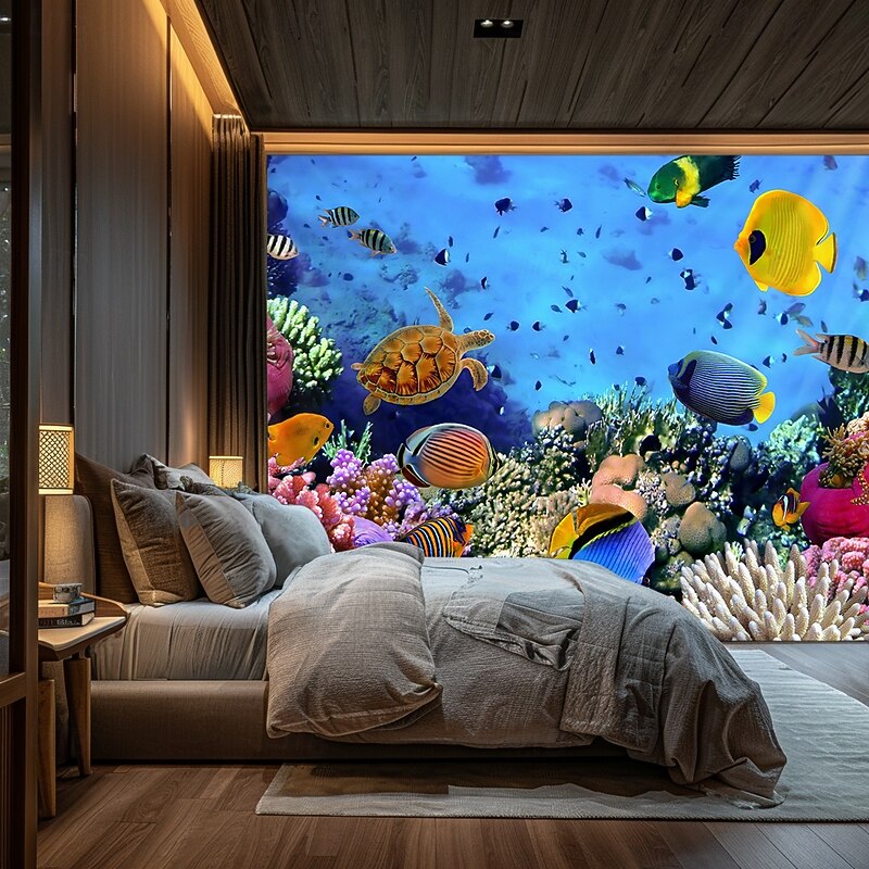 HOT ! Landscape Ocean Fishes Hanging Tapestry Wall Art Large Tapestry Mural Decor Photograph Backdrop Blanket Curtain Home Bedroom Living Room Decoration