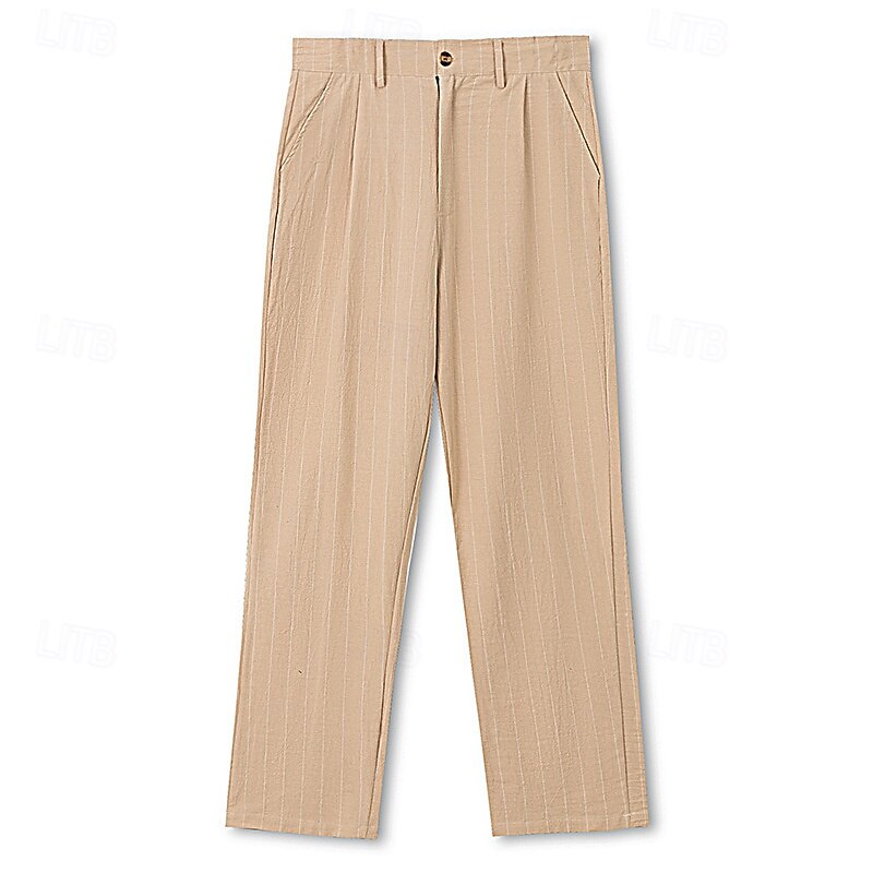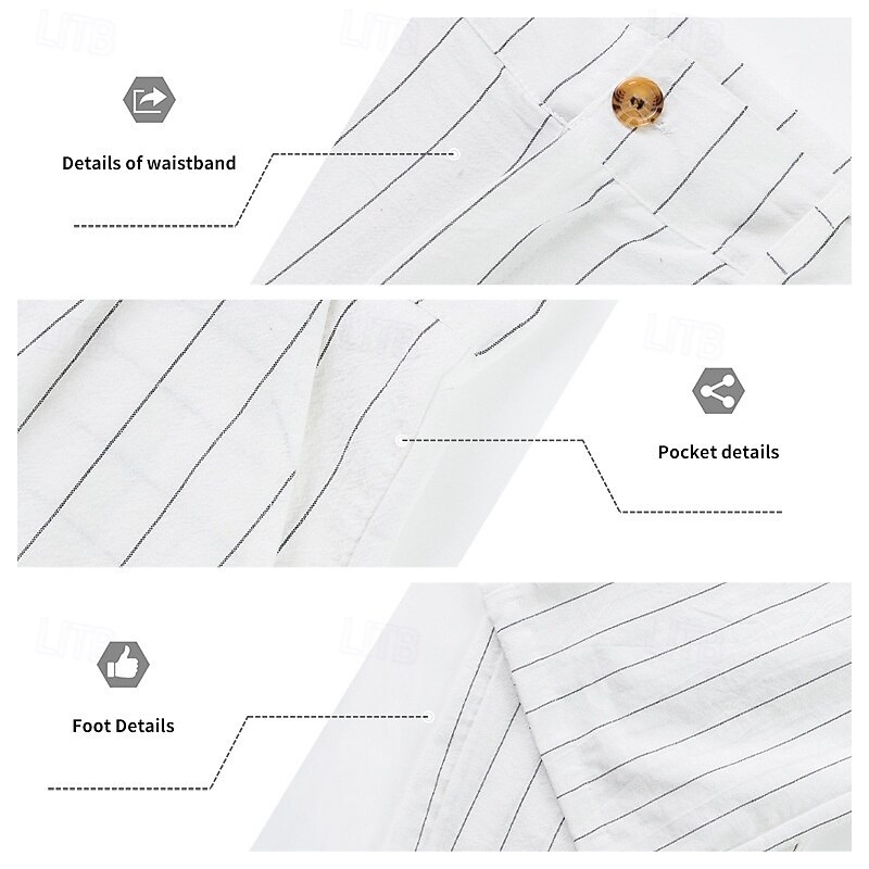 More information about Men's Linen Pants Trousers Summer Pants Beach Pants Pocket Straight Leg Striped Comfort Breathable Vacation Daily Holiday Hawaiian Boho Black White