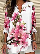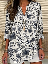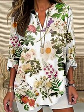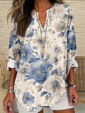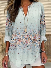 More information about Women's Blouse Floral Stylish Modern Long Sleeve V Neck Regular Tops Daily Holiday Print Light Green Pink Fuchsia Green Dark Gray Summer