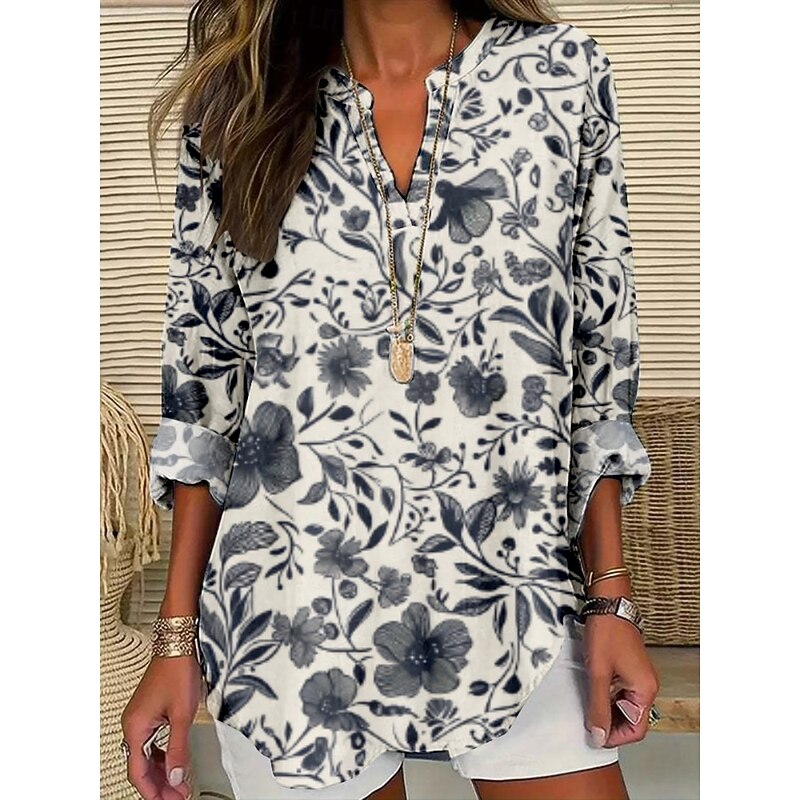 HOT ! Women's Blouse Floral Stylish Modern Long Sleeve V Neck Regular Tops Daily Holiday Print Light Green Pink Fuchsia Green Dark Gray Summer