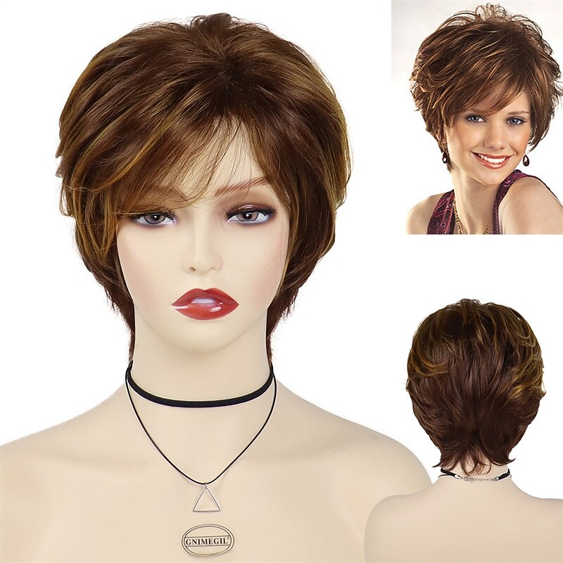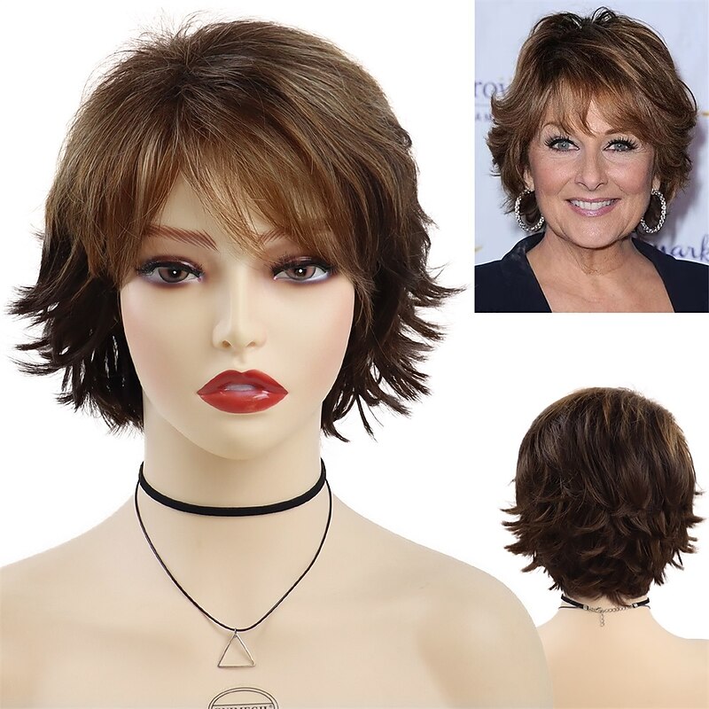 $21.99 - Synthetic Short Wigs for White Women Sandy Blonde Wig with Bangs Mix Brown Color Curly Wig Hair Ombre Elderly Wig Mom 2025. Shop for cheap Older Wigs online? Buy at lightinthebox.com on sale today!