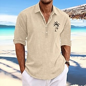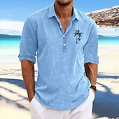 More information about Men's Coconut Tree Tropical Plants Shirt Summer Hawaiian Shirt Aloha Shirt Long Sleeve Shirt Stand Collar Fashion Streetwear Designer Outdoor Street Casual Black Blue Khaki S M L