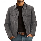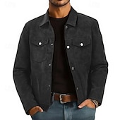 More information about Men's Faux Suede Jacket Cargo Jacket Vacation Daily Wearproof Pocket Fall Winter Plain Fashion Classic Lapel Regular Black Brown Gray Jacket