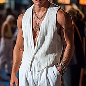 More information about Men's Vest Top Undershirt Sleeveless Shirt Sleeveless Deep V Spring & Summer Solid / Plain Color Fashion Designer Vacation Street Going out White Top Tee for Men