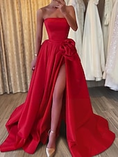 A-Line Evening Gown Elegant Dress Carnival Formal Floor Length Sleeveless Strapless Satin with Appliques