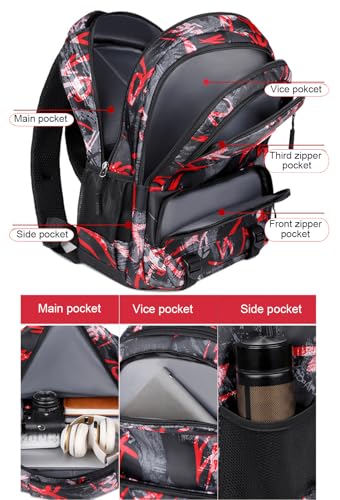 JiaYou Teens Girls Boys Middle School Backpack Unisex Camouflage Primary School Daypack(Red,28 Liters) 6