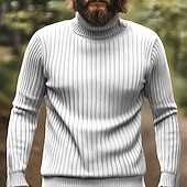 More information about Men's Pullover Sweater Jumper Knit Sweater Ribbed Knit Regular Tops Knitted Plain Turtleneck Fashion Basic Vacation Daily Wear Clothing Apparel Fall Winter Black White M L XL