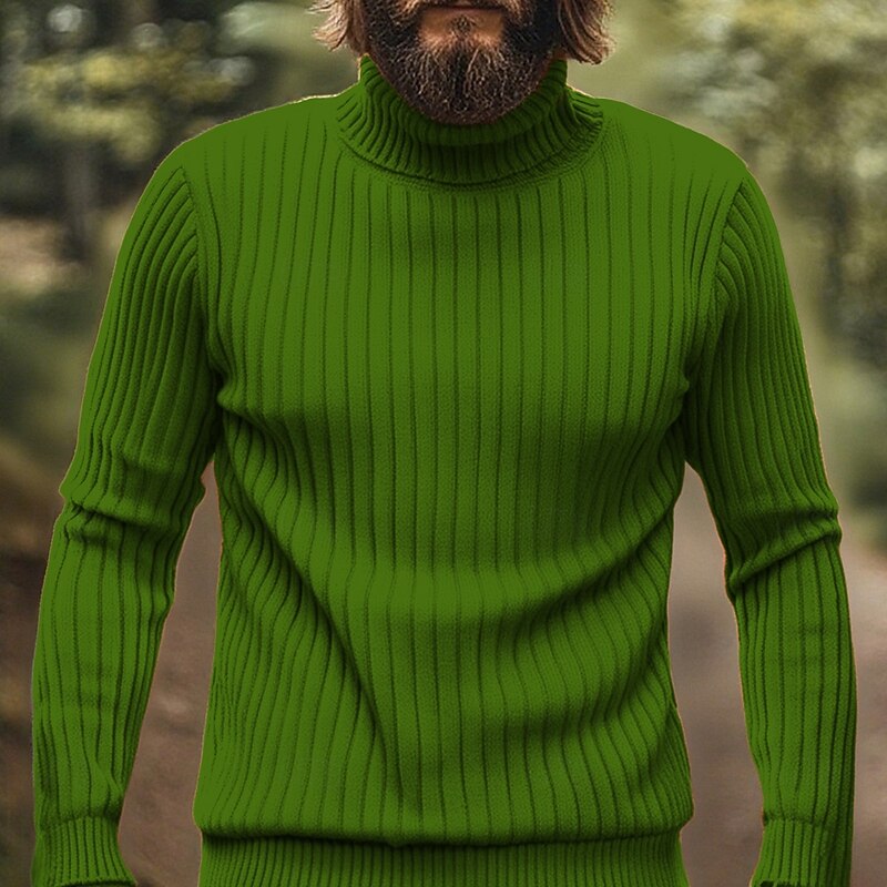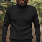 Highlights - Stay warm and stylish in this polyester turtleneck sweater, perfect for the fall and winter seasons - Featuring a classic ribbed knit style and long sleeves, this men's sweater is both basic and casual, making it ideal for dates or vacations.