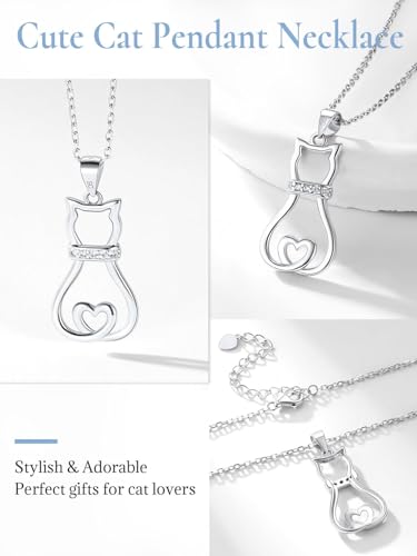 SILVERCUTE Cat Necklaces for Cat Lovers Sterling Silver Womens Jewelry S925 Kitten Pendant Cat Collarbone Necklace 5