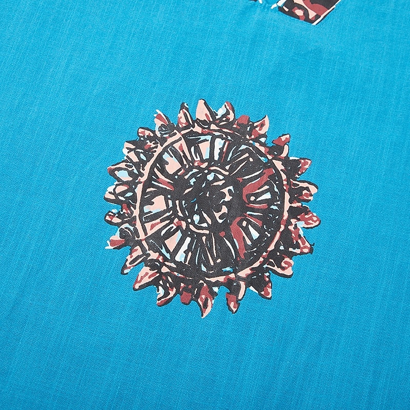 More information about Men's Shirt Popover Shirt Summer Shirt Beach Shirt Patchwork Vacation Holiday Blue Long Sleeve Collarless Summer Spring Clothing Apparel Ethnic