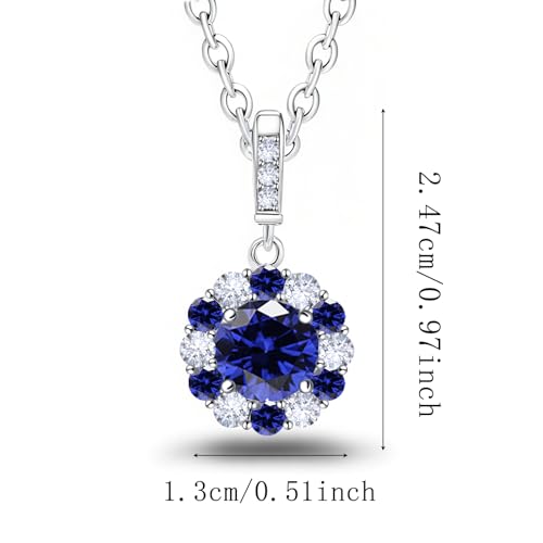 More information about Sapphire Necklace Sterling Silver Sparkling CZ Blue Round Halo Pendant Necklace Fashion Exquisite Round Cut Halo Pendant Luxurious September Birthstone Jewelry Gifts for Birthday Wedding Christmas