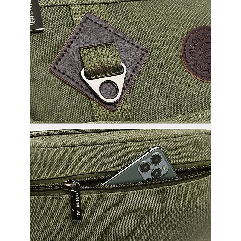 Men's Durable Canvas Crossbody Bag with Multiple Pockets – Casual Outdoor Shoulder Bag for Travel, Hiking and Daily Use Black Army Green Brown 6