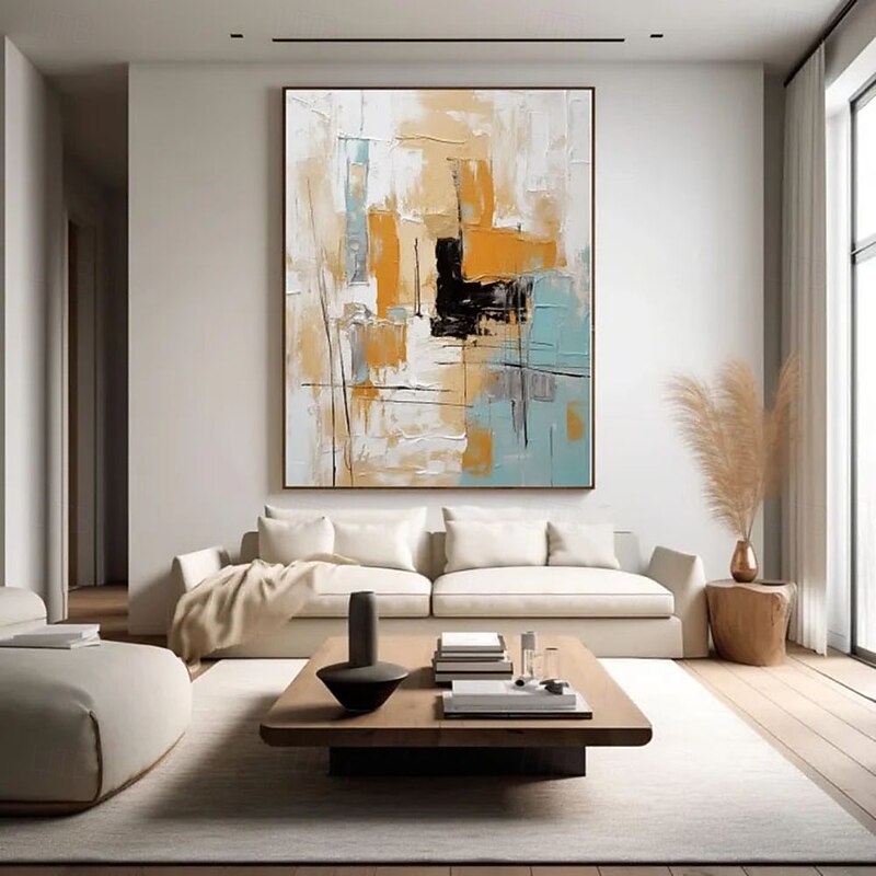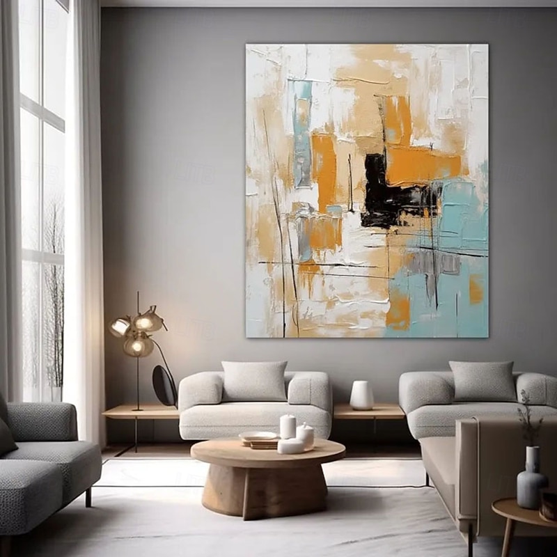 $77.99 - Handmade 3D Oil Painting Abstract Modern Artwork with Vibrant Color Palette and Rich Hues Created Using Impasto and Layered Brushstrokes Showcasing Geometric Patterns Art Wal Decor 2025. Shop for cheap Abstract Paintings online? Buy at lightinthebox.com on sale today!