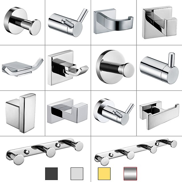Multifunction Robe Hook, Modern Style, 304 Stainless Steel, 4-Finish Black, Chrome, Brushed, Gold- for Bathroom and Bedroom Wall Mounted 21