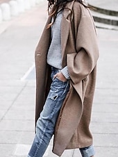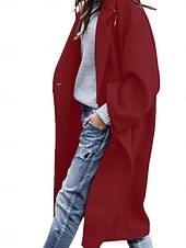 More information about Women's Winter Coat Coat Warm Buttons Daily Modern Solid Color Home Single Breasted Long Turndown Loose Fit Long Sleeve Outerwear Black White Red Spring Fall