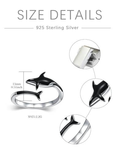 More information about Ocean Open Ring 925 Sterling Silver Orca/Killer Whale/Shark/Manta Ray Adjustable Ring Animal Lovers Jewelry Ocean Gift for Friend/Daughter/Mother, Size 7