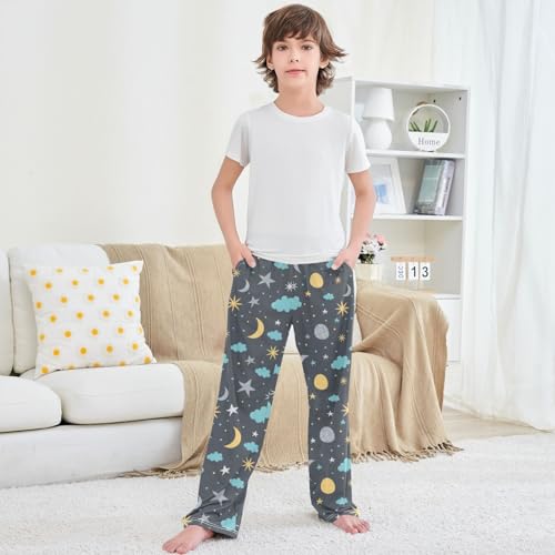 Boy's Pants Yellow Moon Stars Blue Cloud Jogger Pants Elastic Waist Long Bottoms Trousers with Pockets 6-14 Years 4