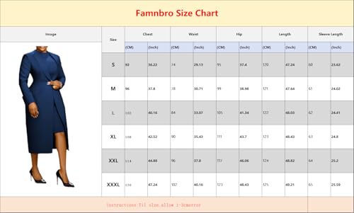 Famnbro Womens Suits 2 Piece Set Long Blazers Jacket Back Slit Dress Sets Work Business Fashion Outfits 4
