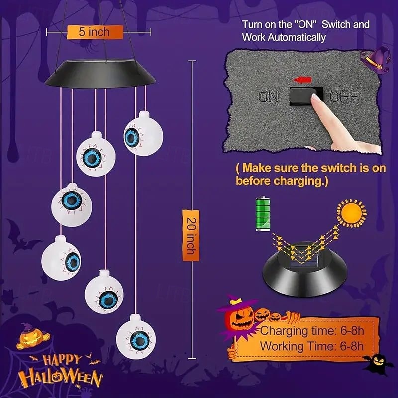 More information about Solar Halloween Eyeball Wind Chime Light Waterproof Outdoor Indoor Hanging Decoration for Yard Porch Patio Window Evil Spirit Party Decoration