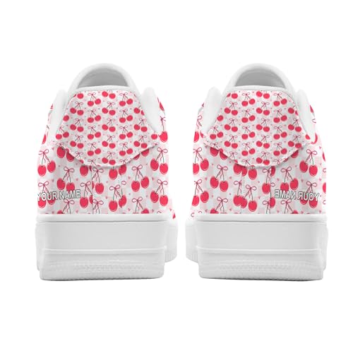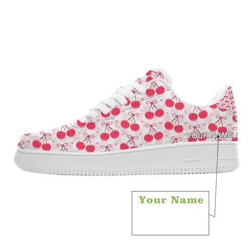 Unique Custom Name Low-Top Sneakers for Womens, Personalized Cute Cherry Print Casual Everyday Walking Comfortable Outdoor Shoes, White Fashion Sneakers for Women 6