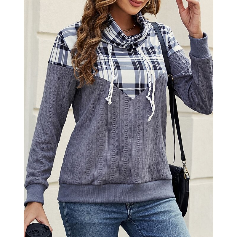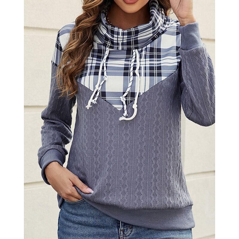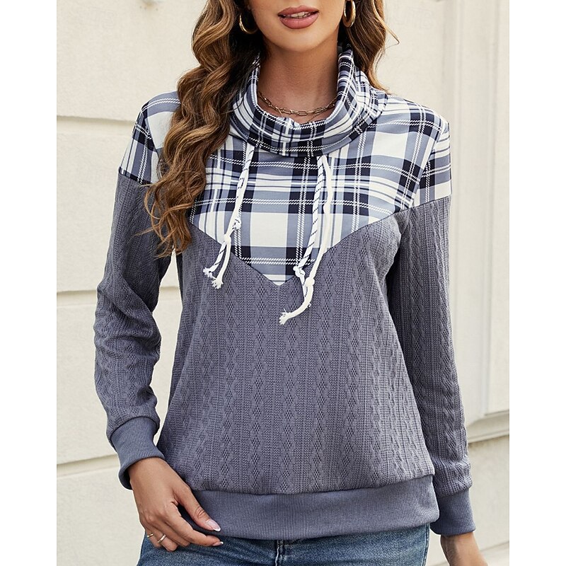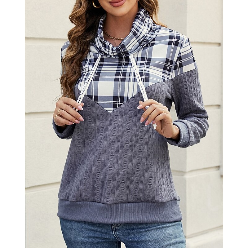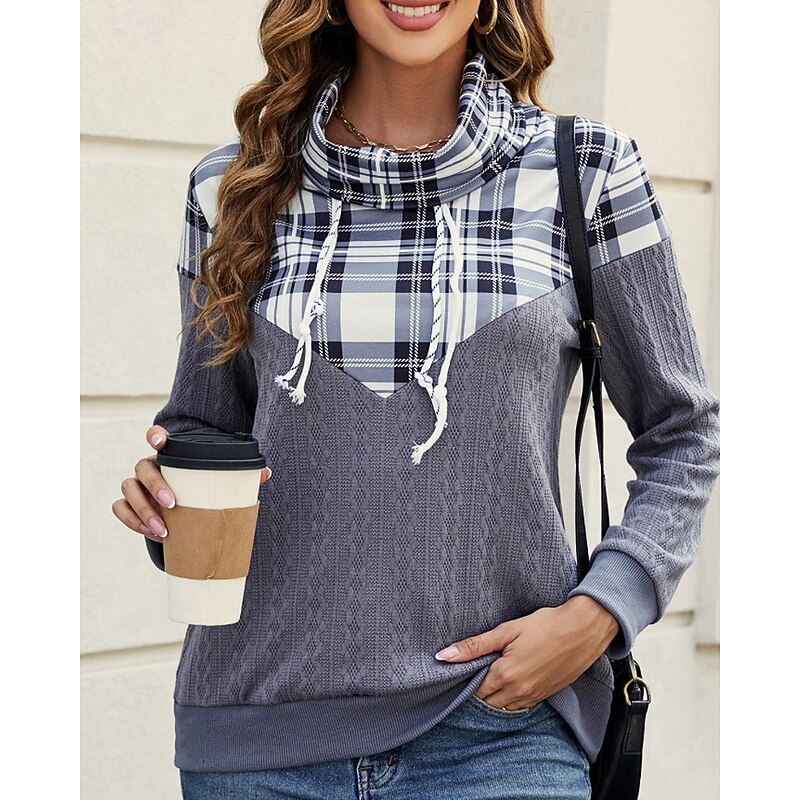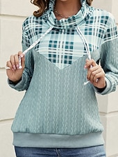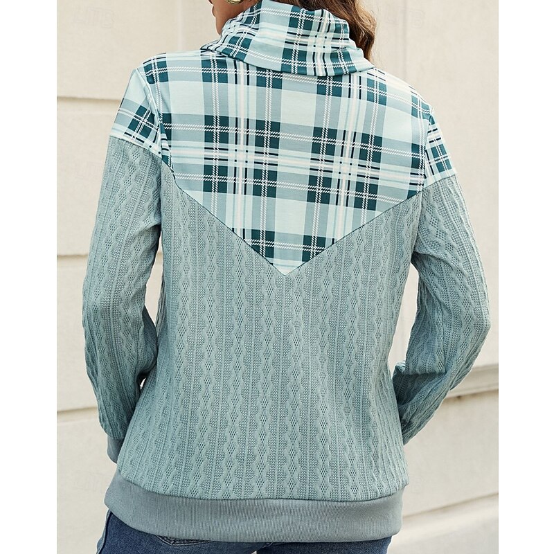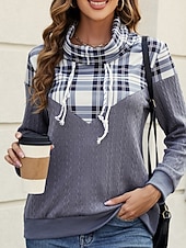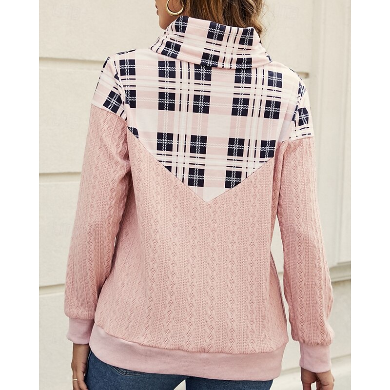 More information about Women's Pullover Sweatshirt Plaid Streetwear Casual Long Sleeve Turtleneck Regular Tops Street Holiday Patchwork Pink Green Dark Gray Fall