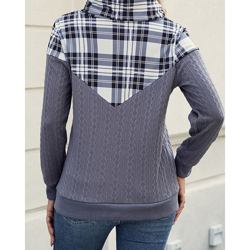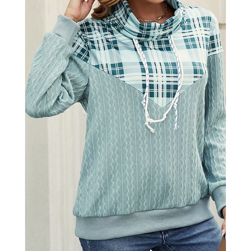 HOT ! Women's Pullover Sweatshirt Plaid Streetwear Casual Long Sleeve Turtleneck Regular Tops Street Holiday Patchwork Pink Green Dark Gray Fall