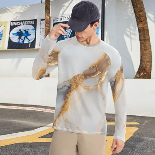 HOT ! Marble White White Men's UPF 50+ Loose Crew Neck Round Neck Mens Sun Protection Long Sleeve Beach
