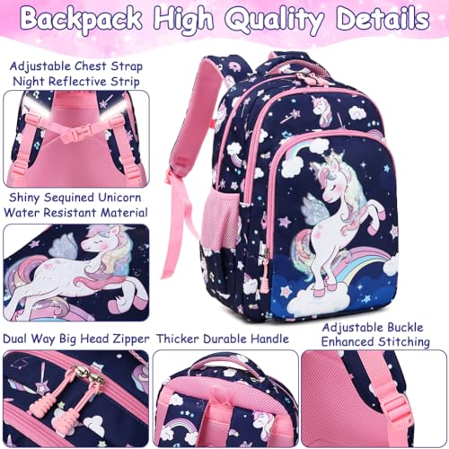 Girls Backpack for Elementary Kids School Bookbag Set Cute Unicorn Backpacks for Girls Water Resistant 4