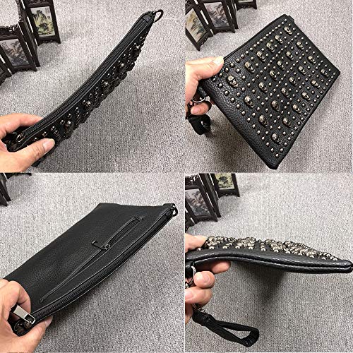 Chikencall Women Gothic Skull Rivet Clutch Purse Studded Shoulder Cross-Body Bag 6
