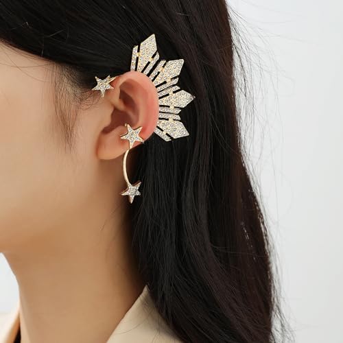Gold Rhinestone ELf Cuffs Star Statement Earrings for Women 5