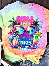 More information about Women's T Shirt Ombre Graphic Casual Short Sleeve Round Neck Regular Tops Daily Print Pink Summer Girls Trip